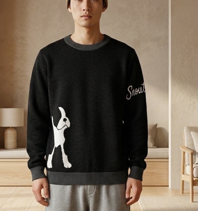 秋冬に大活躍間違いなしの柔らかいニットクルーネックセーターが登場。 ボストンテリアのシルエットがさりげなく、モノトーンで使いやすいデザインになっています。 バックには 、"Snoutique と言えば" の オレンジ色のキャップをかぶったパピーがそっとおすわり。 リラックススタイルならジーンズを合わせて、よりフォーマルな場ならドレスアップした装いも可能です。 オーバーサイズでも、ジャストサイズでもおしゃれに着こなせますよ。 超柔らかで温かく快適でありながら、ゴワゴワしないように丁寧に編み上げをしています。 クラシックで、綺麗なシルエットです。 【家族みんなで / プレゼントにも】 3XL から展開しています。身長120cm〜130cmくらいのお子さんにも近いサイズ感かと思いますのでご家族みんなでお揃いにできます! ちょっと決めたい時に、いかがでしょうか? プレゼントにも最適です。 ※着用画像はイメージです 【サイズ】 3XS 胸囲(平置):41.3cm 身丈:57cm 袖丈:54.3cm 2XS 胸囲(平置):44cm 身丈:60cm 袖丈:57.2cm XS 胸囲(平置):47cm 身丈:63cm 袖丈:60cm S 胸囲(平置):49.5cm 身丈:65.4cm 袖丈:63cm M 胸囲(平置):52cm 身丈:68cm 袖丈:65cm L 胸囲(平置):56cm 身丈:70.5cm 袖丈:66cm XL 胸囲(平置):60cm 身丈:73cm 袖丈:67cm 2XL 胸囲(平置):64cm 身丈:75.6cm 袖丈:68cm 3XL 胸囲(平置):68cm 身丈:76.5cm 袖丈:68.6cm ※サイズによって柄の大きさを調整しています。 ※本商品の掲載サイズはメーカー提供サイズとなります。 サイズ表記につきましては、約1~3cmの誤差が出る場合がございます。 【小さいサイズの身長目安】 3XS:120cm〜135cm前後 2XS:135cm〜150cm前後 XS:145cm〜158cm前後 ※体格による個人差が大きいため、必ずお持ちの服との比較等の上、お間違いのないようお願いします。 【素材】 コットン 55%、ポリエステル 45% 【カラー】 グレー×チャコール(襟袖口)×ブラック(アート部分) 【お届けについて】 こちらの商品は受注生産となる為、 ご入金から3週間前後でお届け予定です。 海外の提携工場で一つ一つ製造を行いますので、発送後、輸送トラブル等がないことを確認するためにも "日本に到着" したタイミングで「発送完了」のお知らせをいたします。 ◼️注意事項 ・洗濯機で洗濯可能です ※お湯を使用しないでください ・タイミングによっては 受注商品在庫切れにより 注文キャンセルとさせていただく恐れもございますので、予めご了承くださいませ。 ・商品の色味は、お手持ちのスマートフォンの 画面によって実物と若干異なる場合がございます。 ・イメージ違いやサイズ等、お客様都合による交換、 返品、キャンセルは対応出来かねます。 ———————————— ご購入前に必ずこちらをお読みください → https://shop.snoutique.net/about ————————————