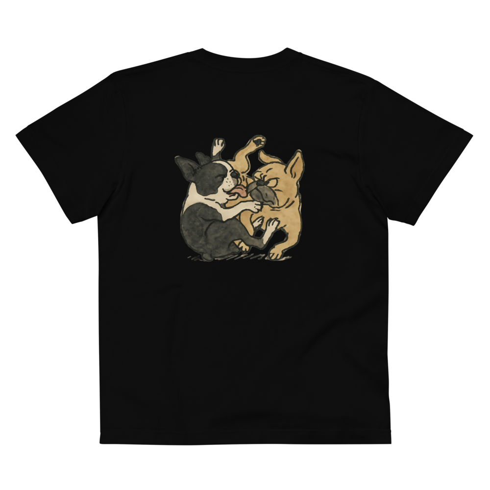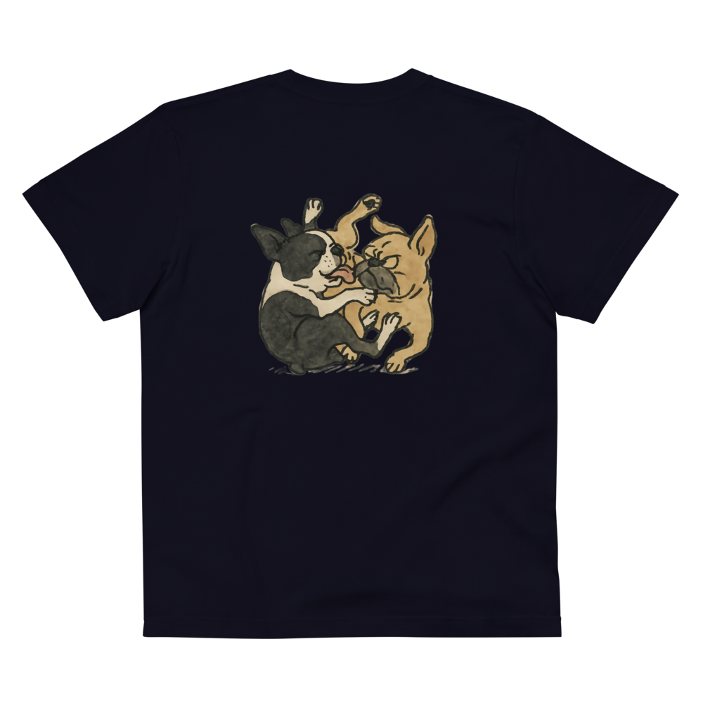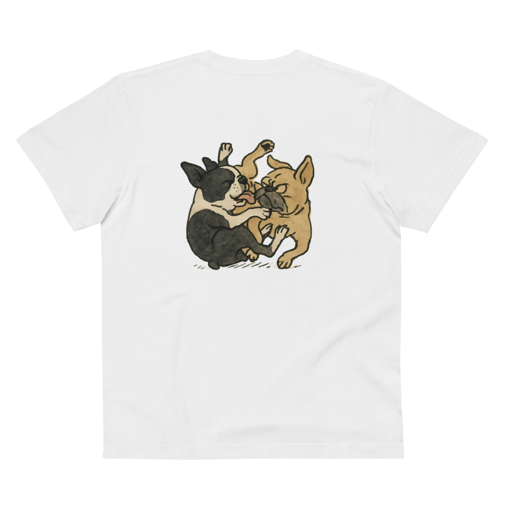 胸元には2匹の様子を表す"Dogs playing?"をおしゃれにプリントしています。