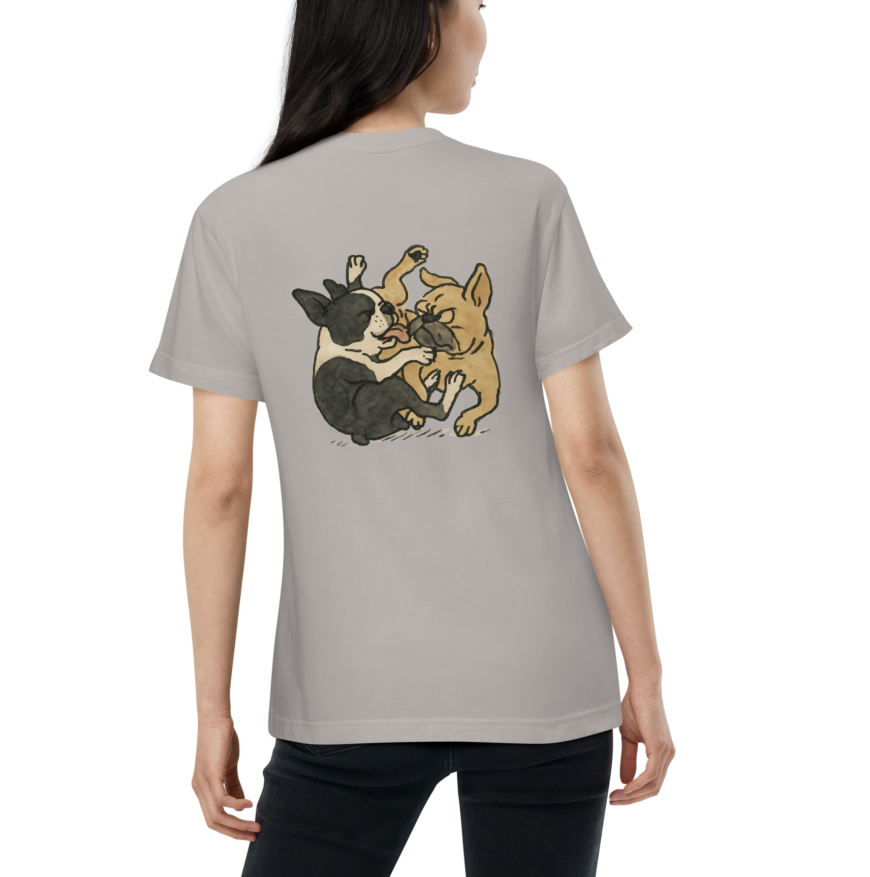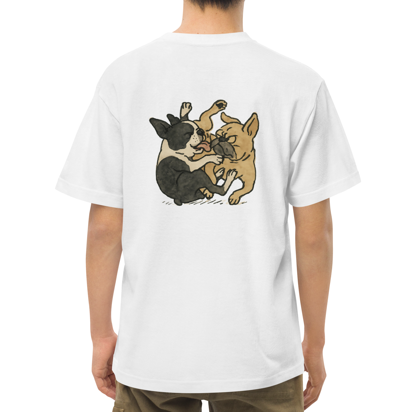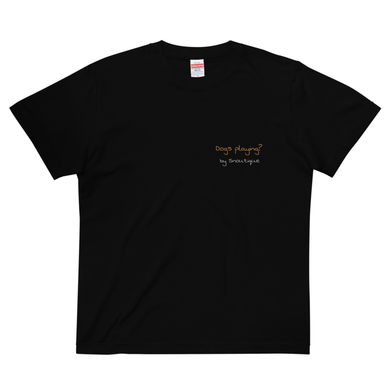 胸元には2匹の様子を表す"Dogs playing?"をおしゃれにプリントしています。
