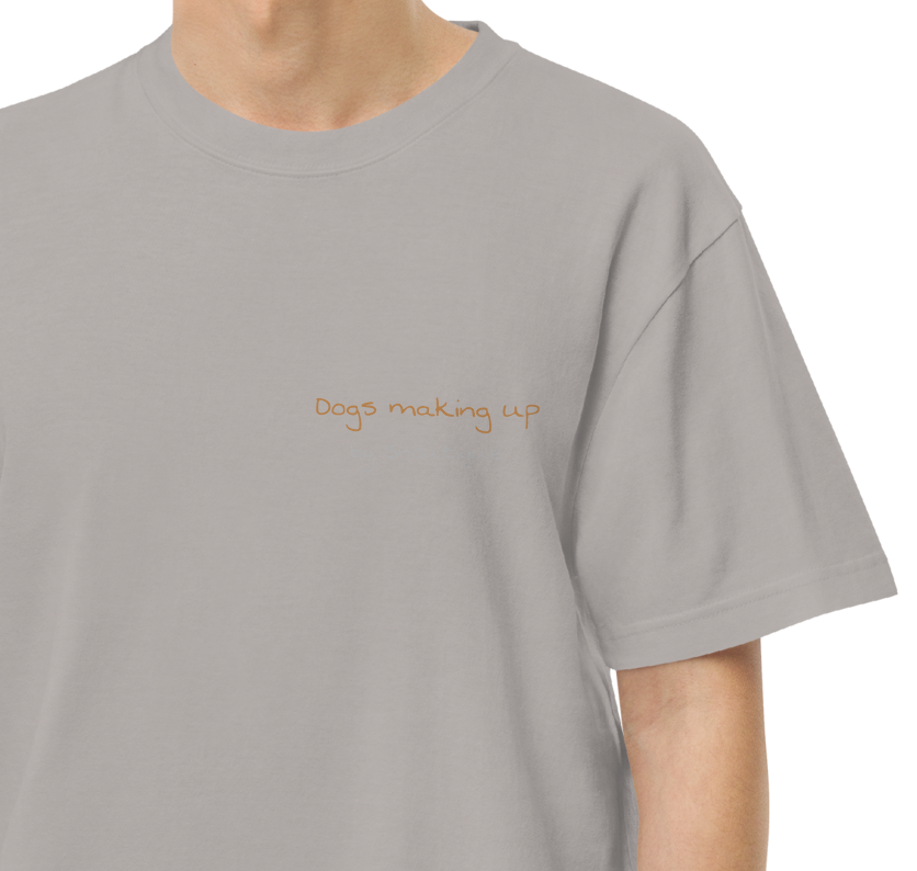 胸元には2匹の様子を表す"Dogs making up"をおしゃれにプリントしています。