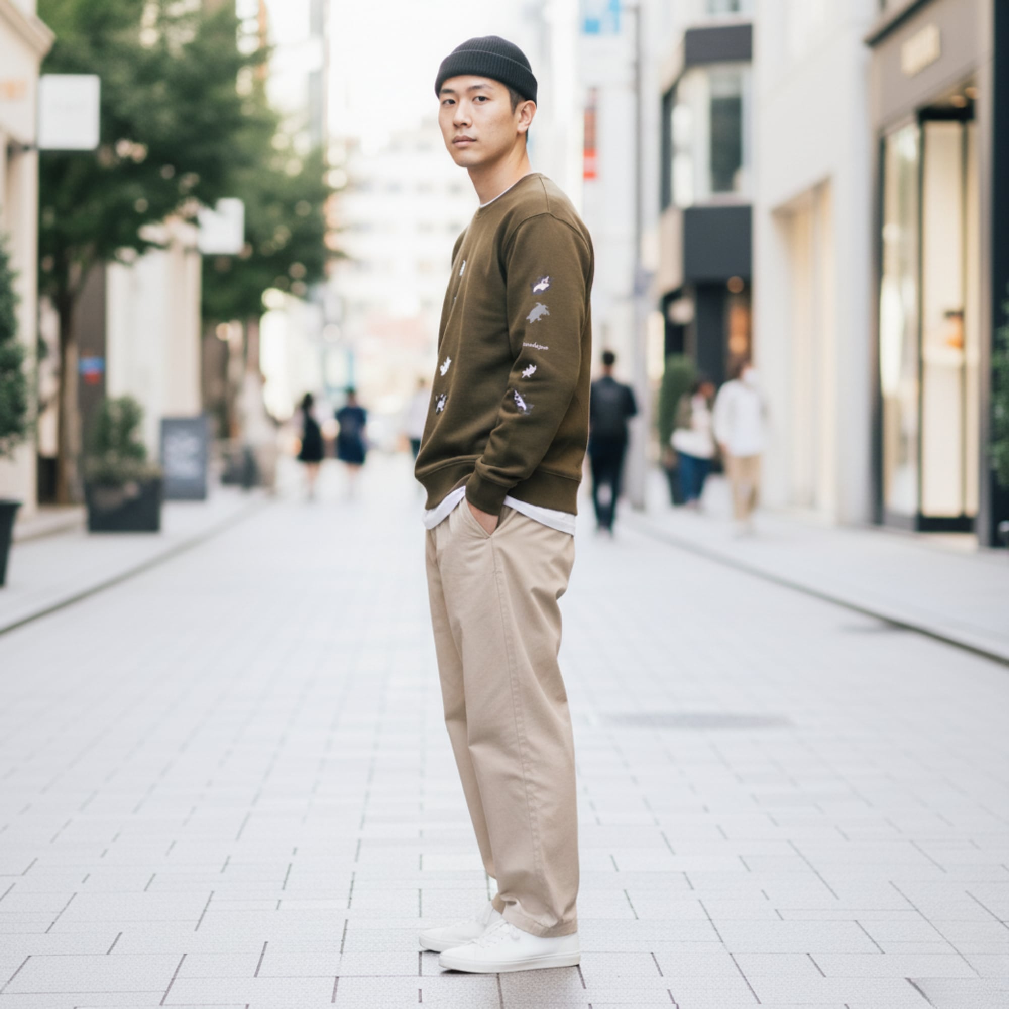 オーソドックスで程よいゆとりがありながら、柔らかく、寒い季節のアウターとの重ね着をしてもゴワつきにくいスウェットです。