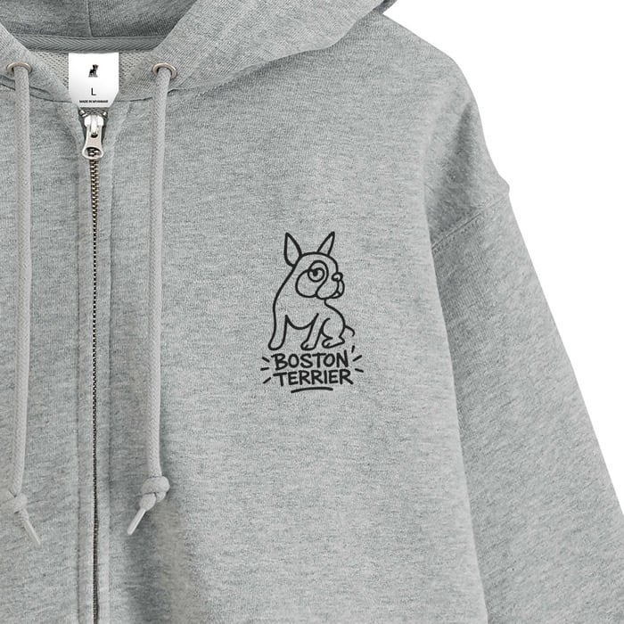 一筆書きのボストンテリアが主役のダブルジップパーカ。