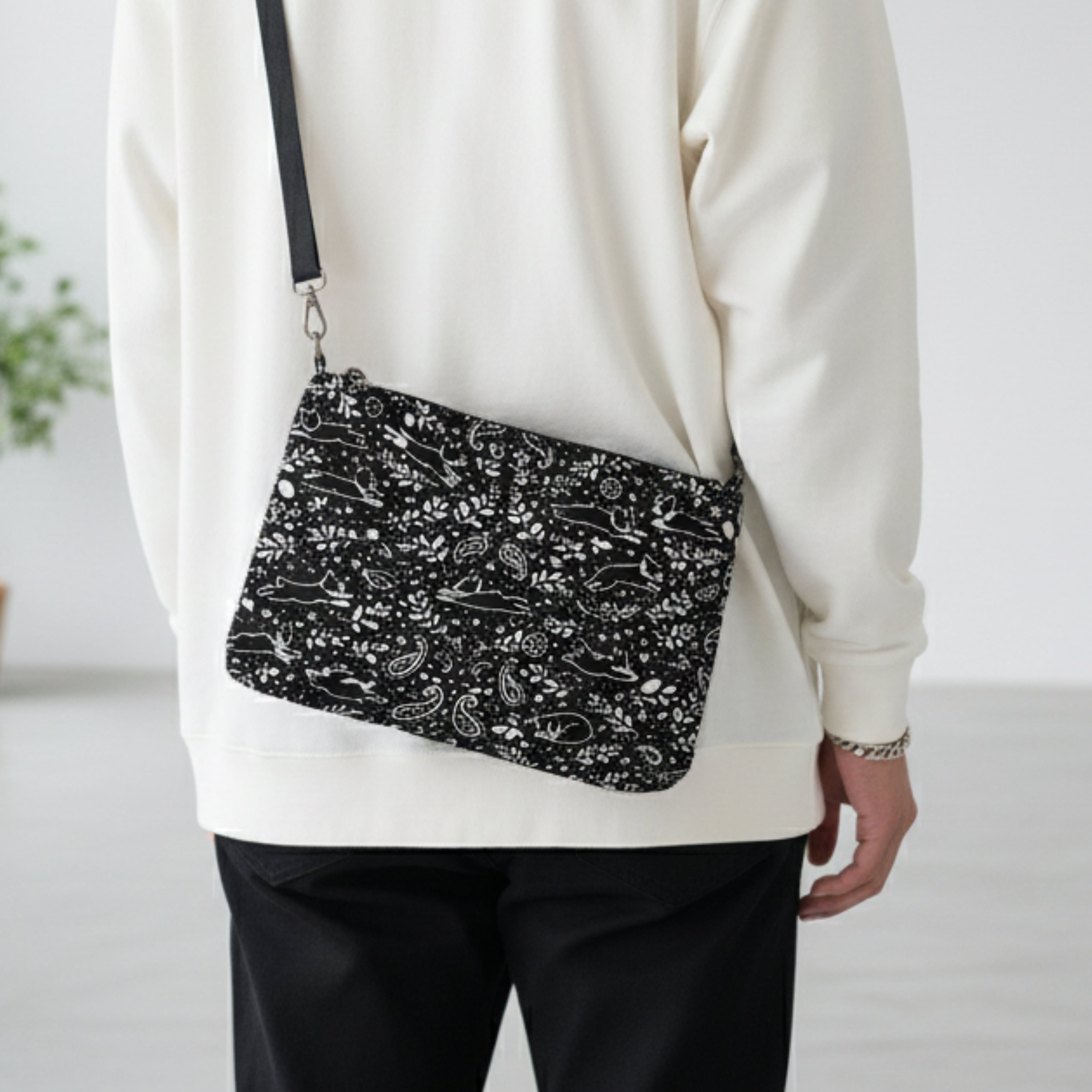 長さ調節ができる取り外し可能なストラップが付いているので、ハンドバッグにしたり、肩からかけたり、お出かけの際にサブバッグとして使用したりと使い勝手が広がります!