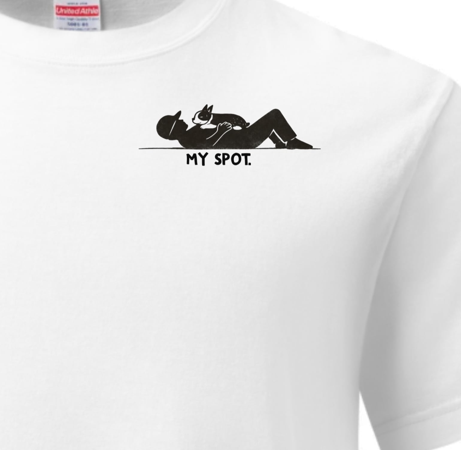 わんこがおなかに乗った時に、ちょうどデザインが見える位置にプリントしています。