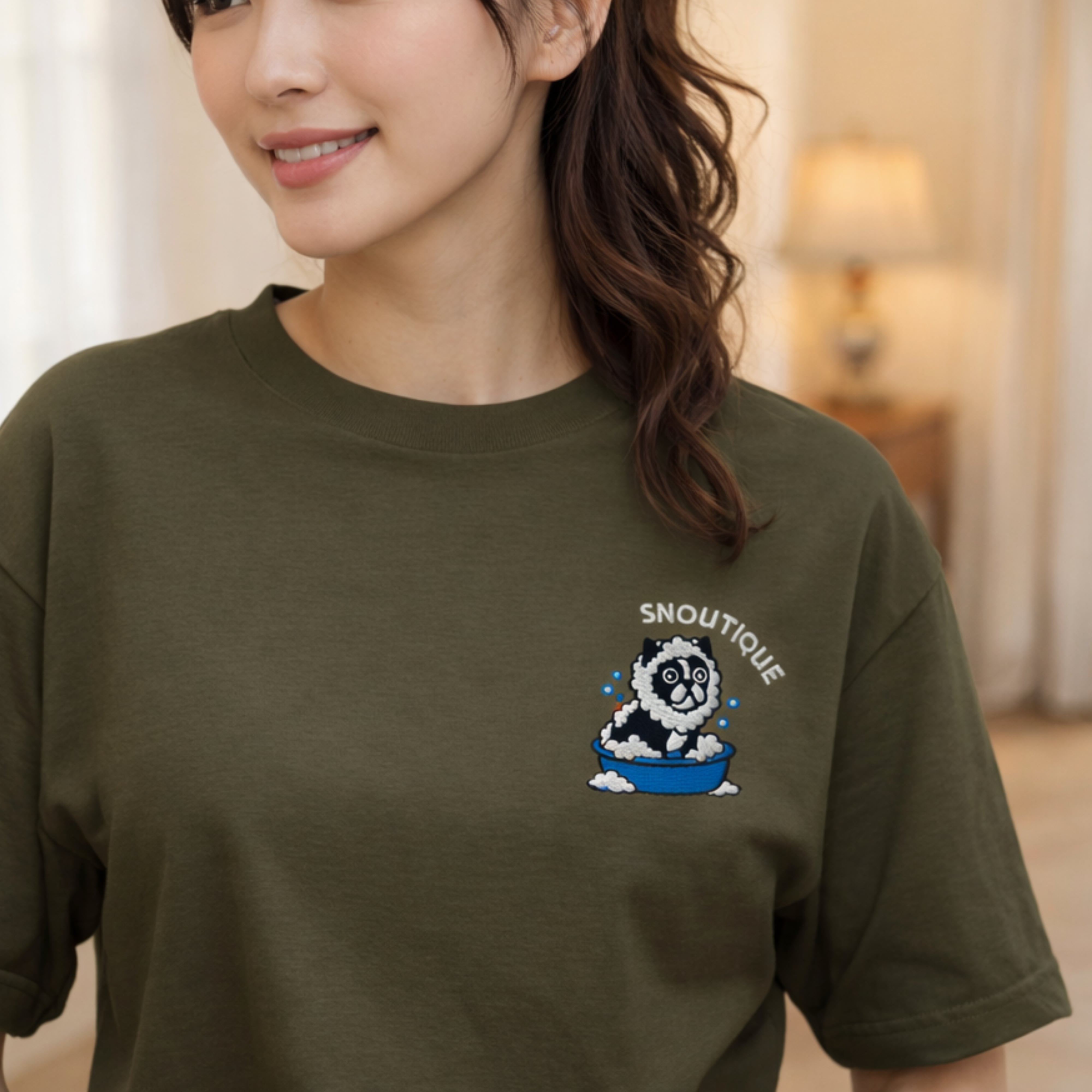 泡に包まれた、ブランドロゴの Snoutique くん。