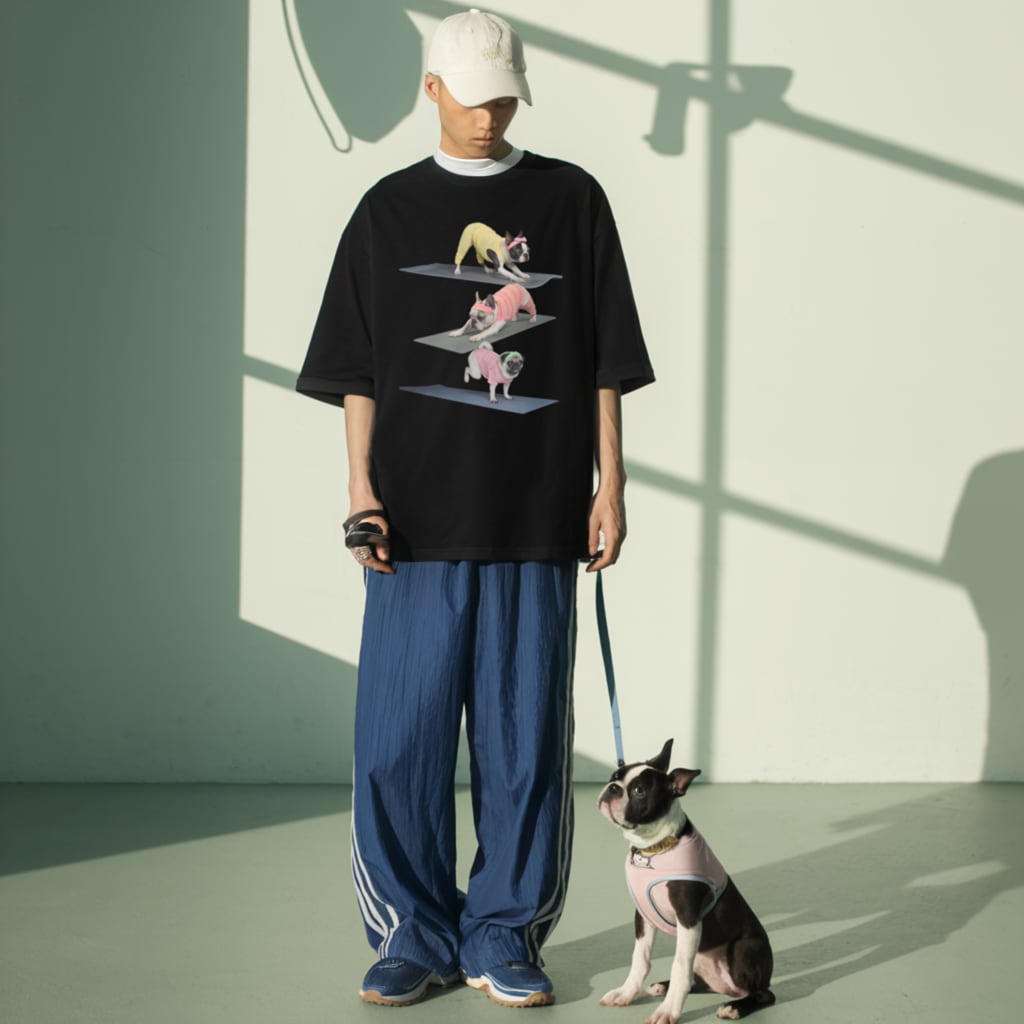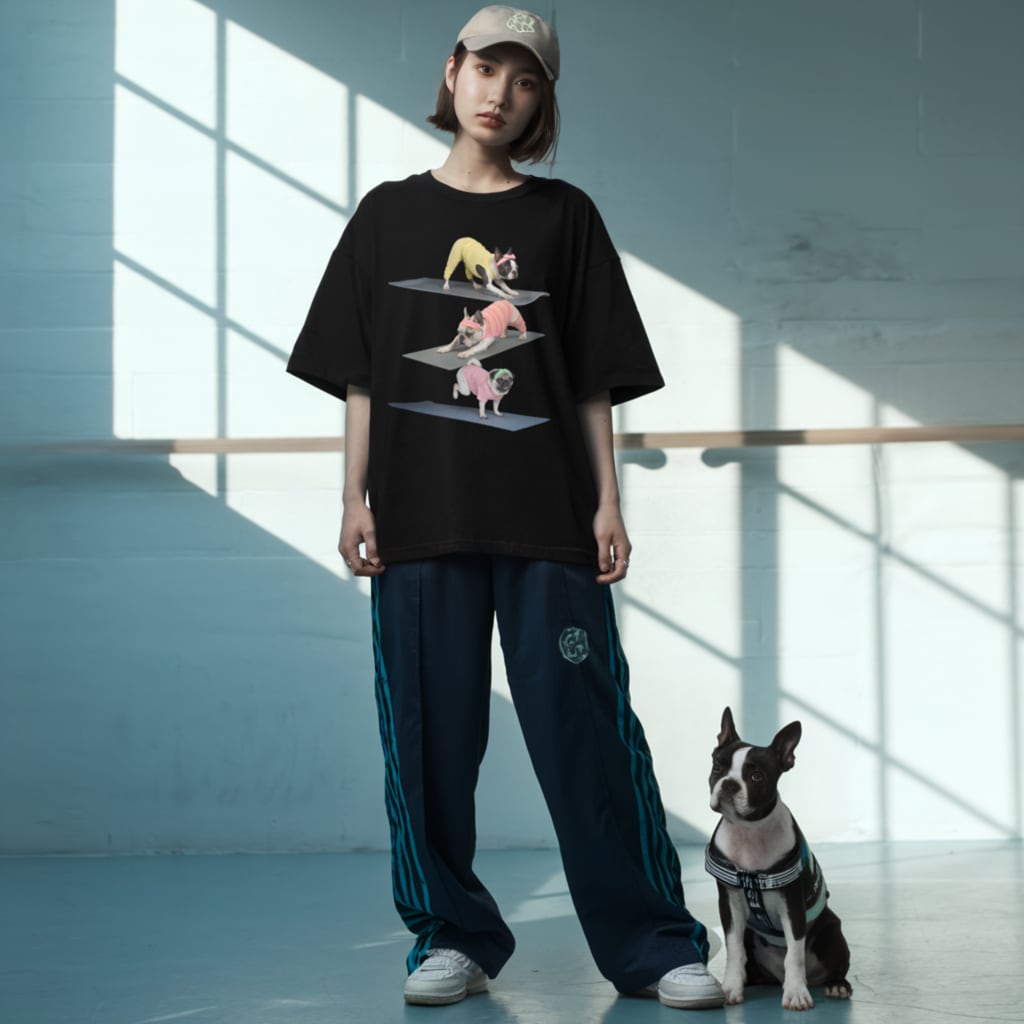 3 Dogs Yoga pose ユニセックス ビッグシルエット Tシャツ pf0106