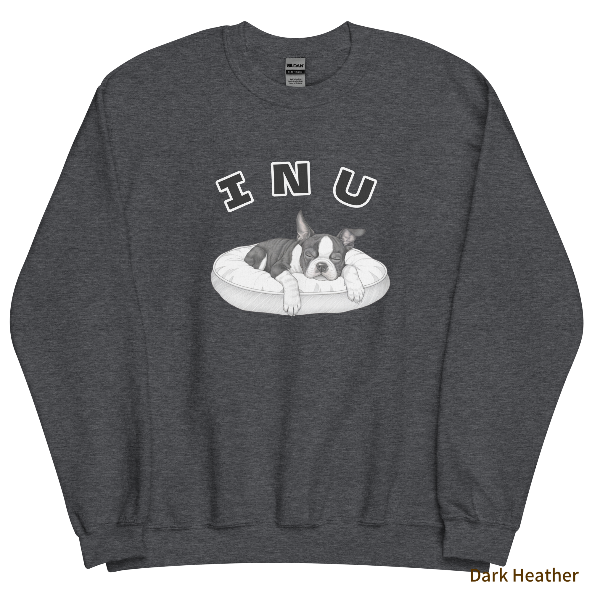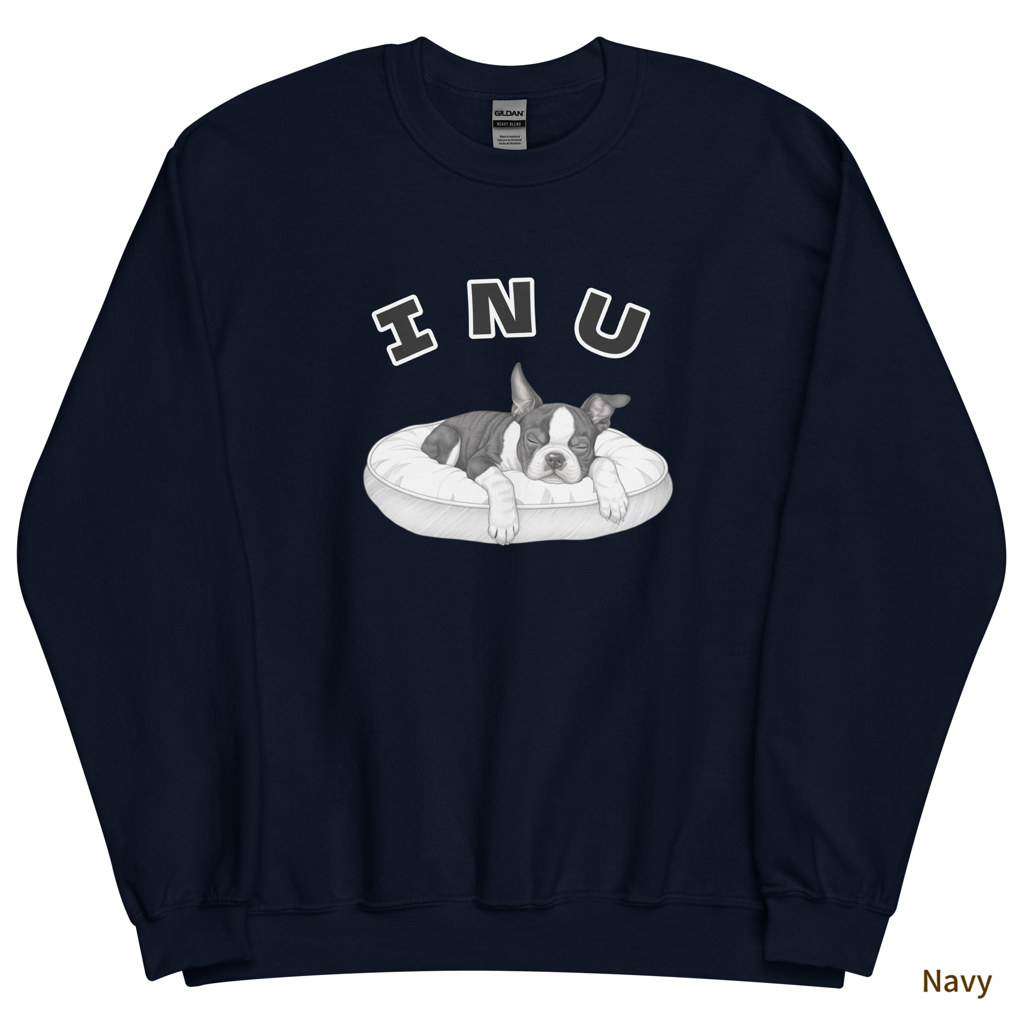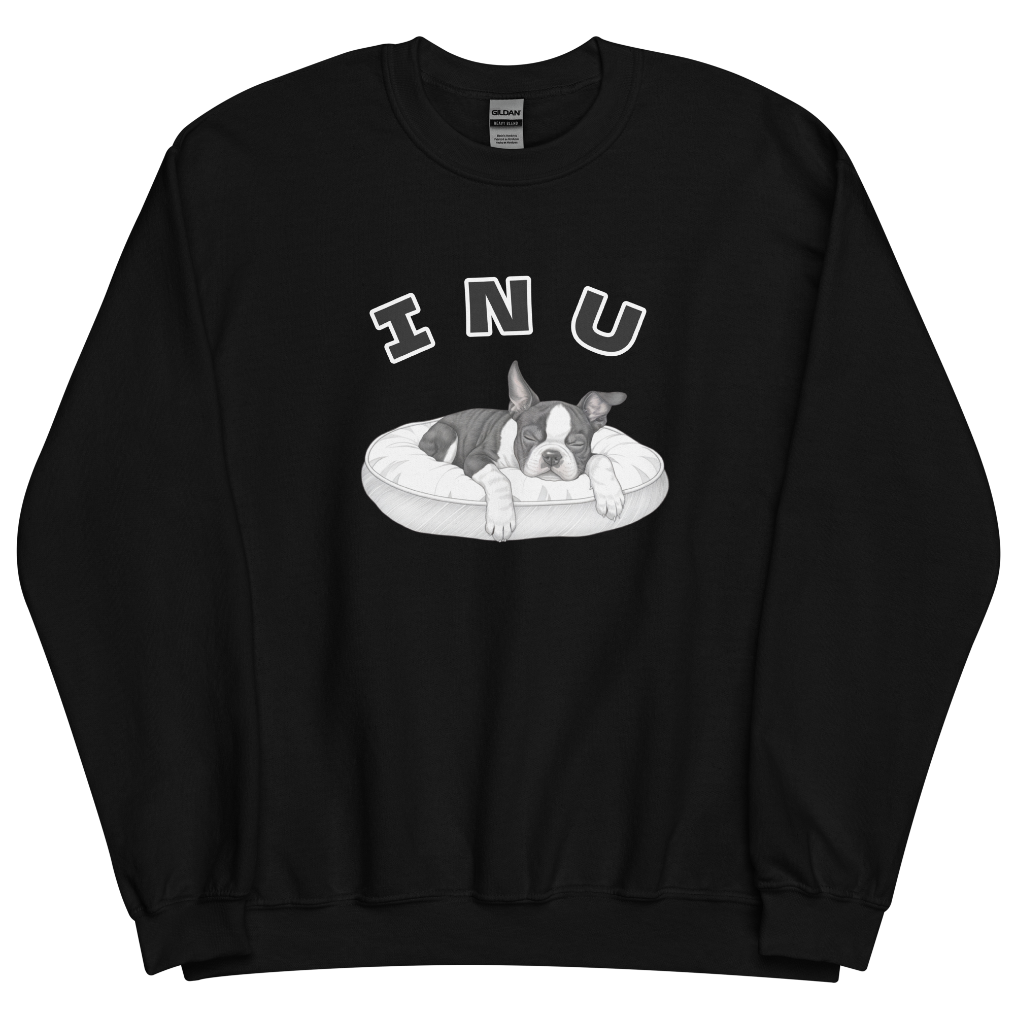 スケッチのように繊細な線で描かれたボストンテリアをスウェットにしました。